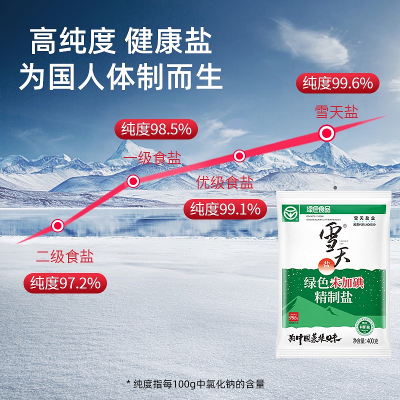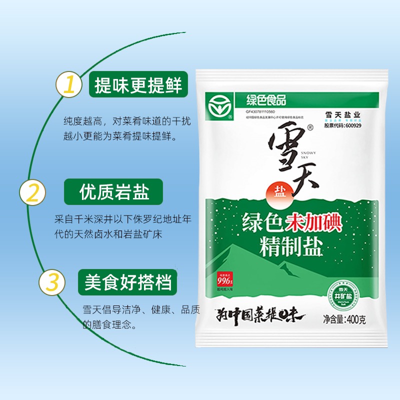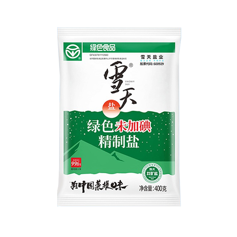 • 商品名称:雪天绿色未加碘精制盐 400G/包