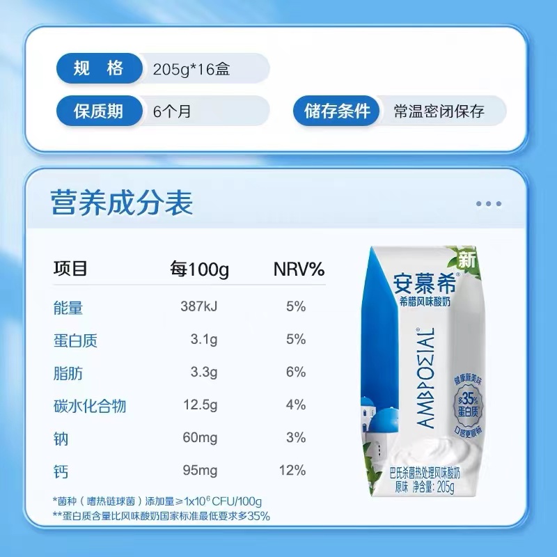 • 商品名称:伊利安慕希原味酸奶205ML*12/件