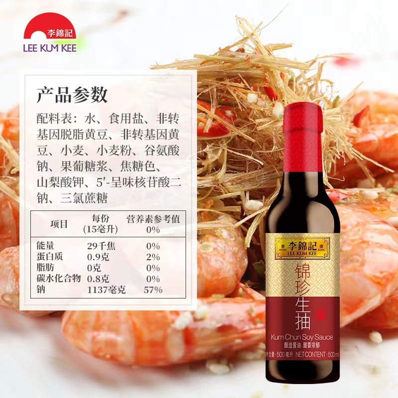 • 商品名称:李锦记锦珍生抽 500ML/瓶