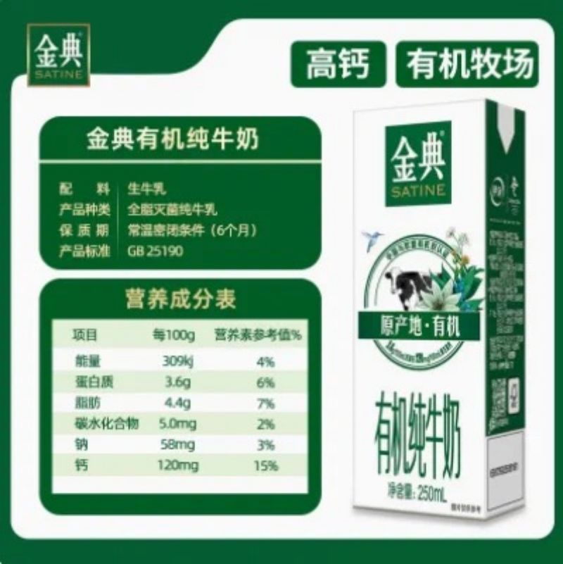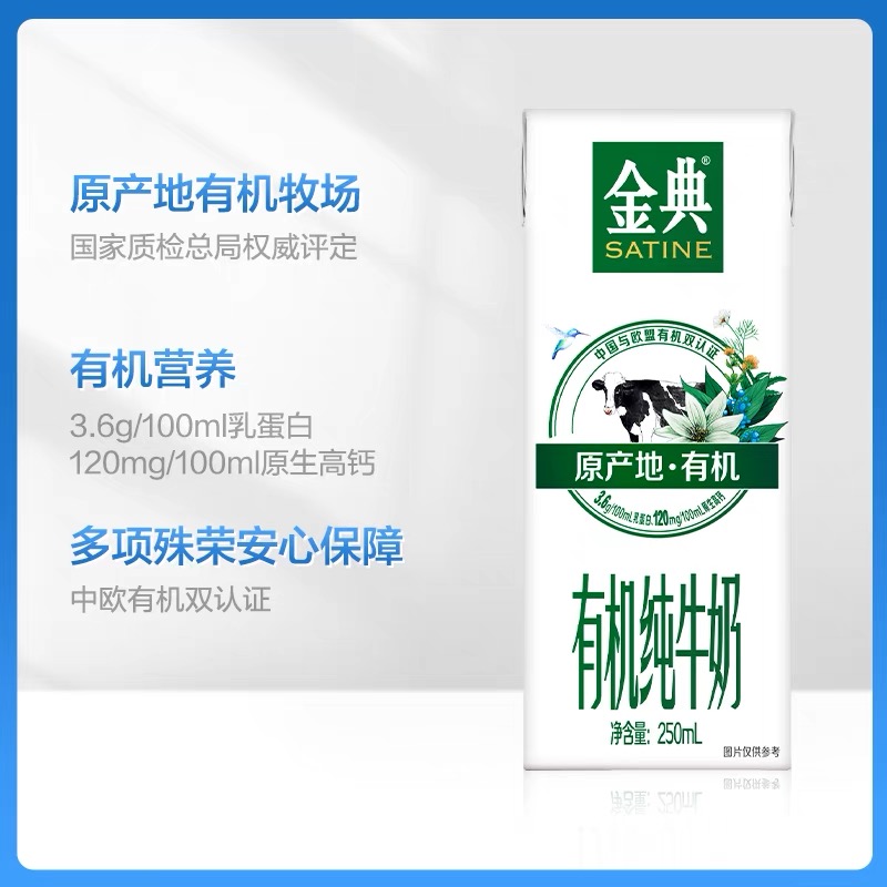 • 商品名称:伊利金典有机纯牛奶 250ML/瓶