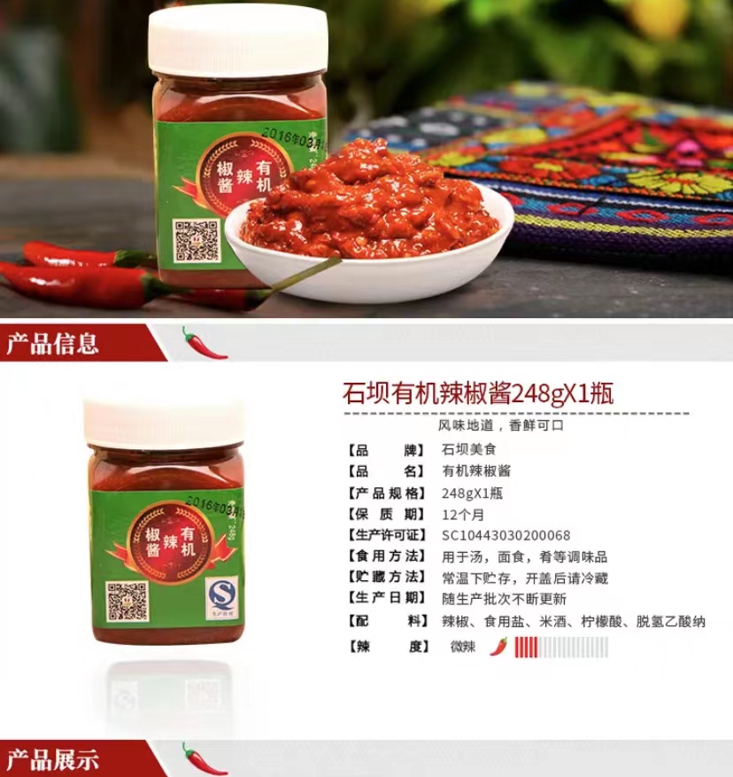 • 商品名称:石坝辣椒酱240g湖南特产农家小瓶装拌面炒菜调料开胃下饭菜