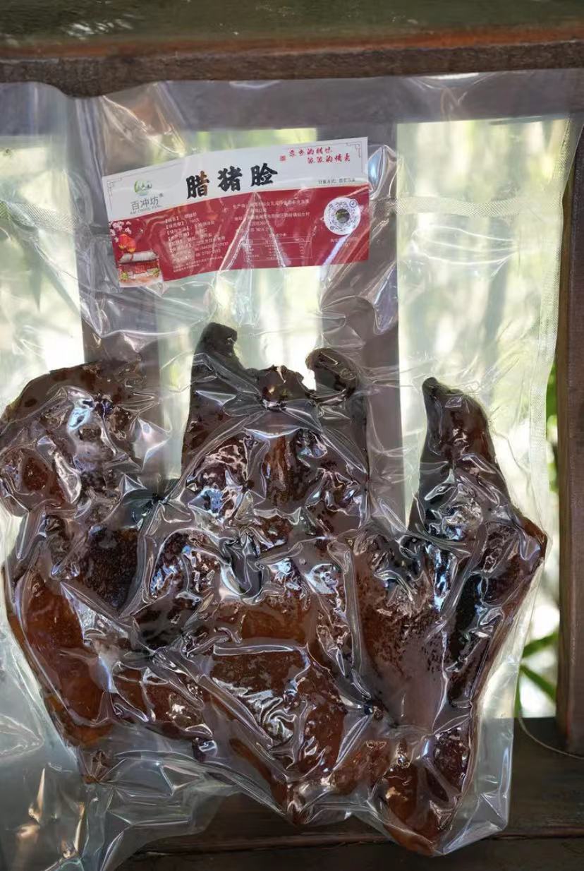 • 商品名称:百冲坊【腊猪脸】湖南土特产烟熏农家腊猪头肉腊猪拱嘴500g